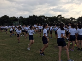 長なわ跳びが始まります。一組は練習タイム、二組は作戦タイム。目標を達成するぞ!
