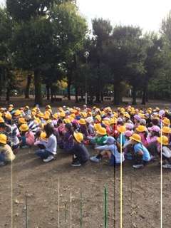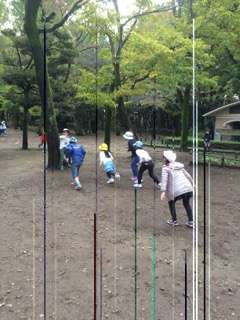 1、2年生で羽根木公園に来ました。2年生が遊びを考えて、1年生と遊んでいます。志村有香