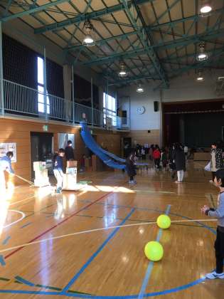 6年生は体育館全体を使って、VS嵐と、松原オリンピックのお店を開いています。数種類あるゲームに皆盛り上がっています。ランキングに名前を残すのは誰でしょうか!6年生が下級生に優しくルール説明をしている姿がたくさん見られました。(真田)