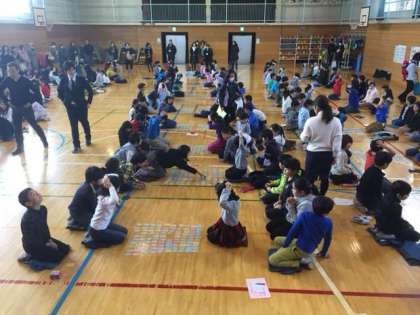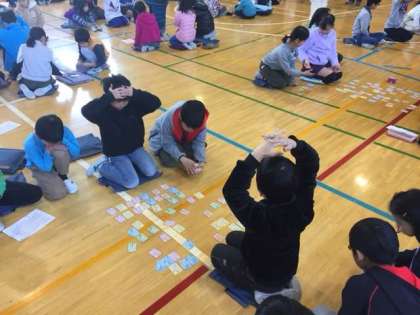 18日(土)に3年生対4年生で百人一首大会が開かれました。4年生に勝ちたい3年生、3年生には負けらない4年生。両学年ともこの日までの練習の成果を十分に発揮しました。中学年間のとても良い交流になりました。(細川)