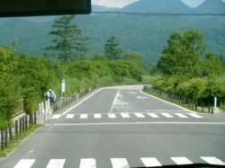 のぼり専用いろは坂の20のカーブを乗り切ると、中禅寺湖に出ました。