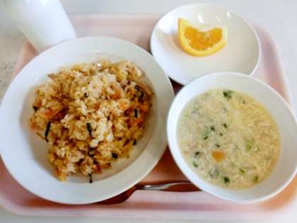 今日は本校の人気メニュー「キムチチャーハン」でした。どのクラスもモリモリ食べてくれて、食缶が空っぽのクラスが全体の半分以上ありました。4月始まってまだ3日目ですが、よく食べてくれるので、給食室はとてもうれしく思います。