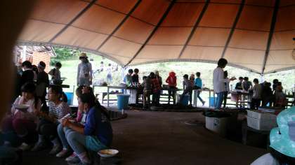 カレーが美味しくできました。ご飯は、班によって個性的?な出来上がりです。