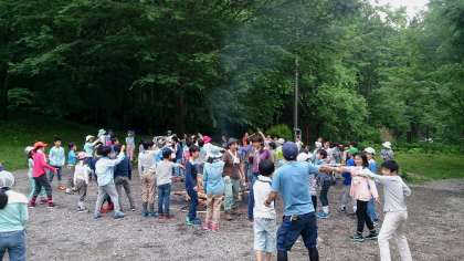 まだ明るいのですが、火の周りでみんな楽しんでいます。