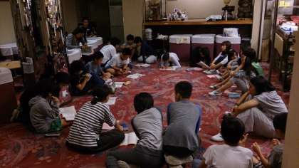 2日目、班長室長会議が始まりました。1日を振り返りました。ハイキングのときみんなで声を掛け合ってがんばったとか、すれ違うときにあいさつができた、という意見が出ました。