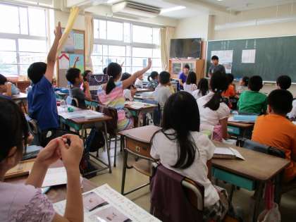 各教室では席替えをしたり夏休みの思い出をスピーチしたり、子どもたちが活発に活動しています。