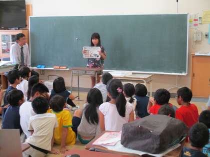4年生は夏休みの自由研究や自由作品について、みんなの前で紹介していました。友達の話を興味をもって聞いて、拍手を送っていて子どもたちです。