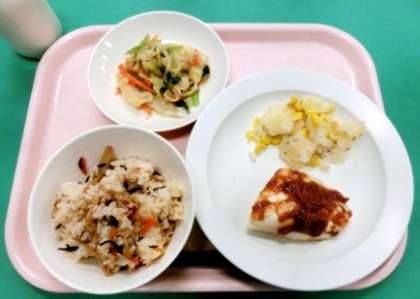 今日は東京都八丈島産のメダイを焼いて、特製のピリ辛ソースをかけました。子どもたちの口にあうとうれしいのですが・・・。