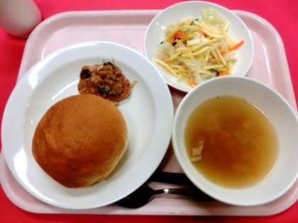 「テリヤキチキンバーガー」は、特製キャベツだれをかけた照り焼きチキンを自分で丸いパンにはさんで食べました。