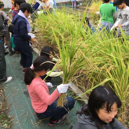 1学期から水の管理に気を付けながら育ててきた稲も、いよいよ刈り取る日がやってきました。