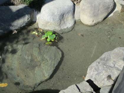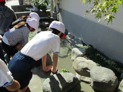 地域の方から、たくさんのメダカをいただきました。写真では小さくてよく見えないかもしれませんが、主事室まえの池で、元気よく泳いでいます。