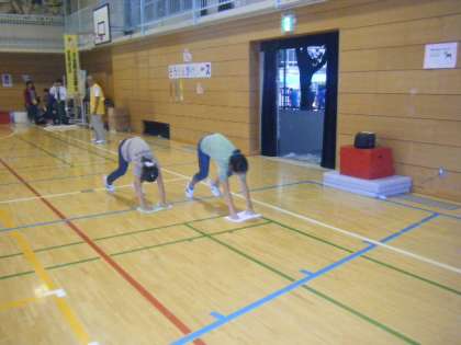体育館では運動遊びが展開されていて、雑巾がけリレーなどで盛り上がっていました。