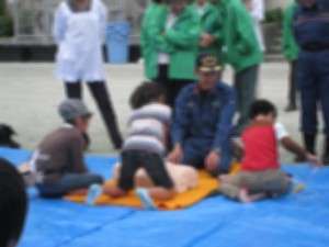 初期消火訓練、煙中避難訓練、心肺蘇生法・AED訓練、