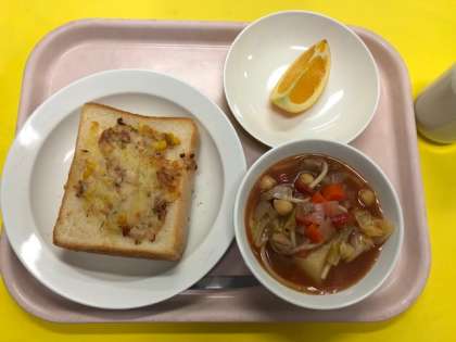 今日のミネストローネには、たっぷりの野菜、ひよこ豆、短く折ったスパゲティーを加えました。給食ではとても大きい釜で大量に作るので、たくさんの素材が合わさった味わい深い美味しいミネストローネができました。子どもたちもよく食べてくれました。