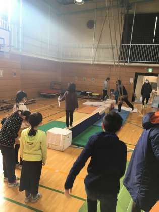 体育館では6-1がミッションインポッシブル、6-3が松原オリンピックをやっています。6年生にバスケや卓球、腕相撲を挑んだり、ストーリーに沿って課題をクリアしていったりして楽しむことができます。