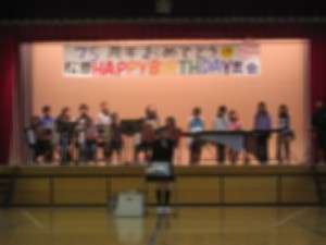 体育館でお祝いをしました。