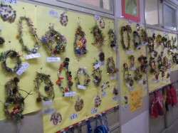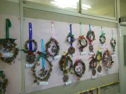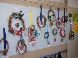 図工の時間も使って、1年生はリースづくりに取り組みました。