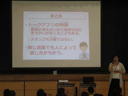 5年生と6年生が、インターネットの投稿の仕組み、インターネットやゲームを通じて出会う危険性、自分の身を守る方法について学習しました。