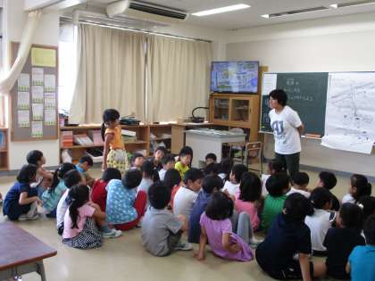2年生がまちたんけんでわかったことを、1年生に分かりやすく伝えます。