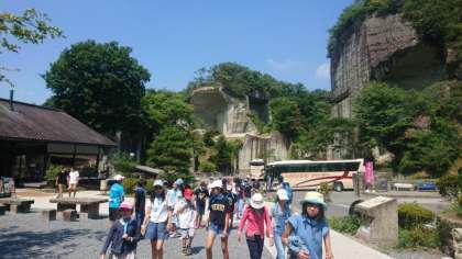 予定よりずいぶん早く大谷石資料館に到着しました。これから班活動になります。みんな元気です。
