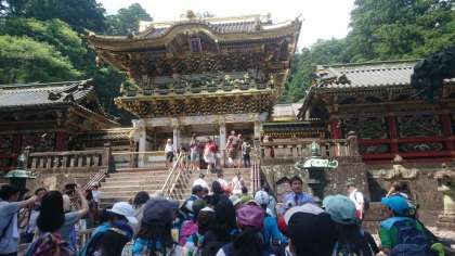 日光陽明門の美しさに圧倒されている子どもたちです。ガイドさんの話をよく聞いてメモをとっています。