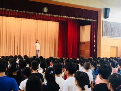 児童代表の言葉では、1学期で頑張ったことと、2学期により頑張りたいことについての話がありました。運動会のソーラン節、整理係の仕事について、友達のおかげで頑張れたこと、教室を綺麗にすることで得られる気持ち良さについて伝えてくれました。2学期は、積極的に発言するという目標を、もって授業に取り組むそうです。一人一人、自分の目標をしっかりともち、2学期を過ごしましょう。