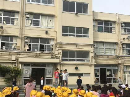 天気が悪かったり、月曜がお休みだったりして、久しぶりの朝会を校庭で行いました。