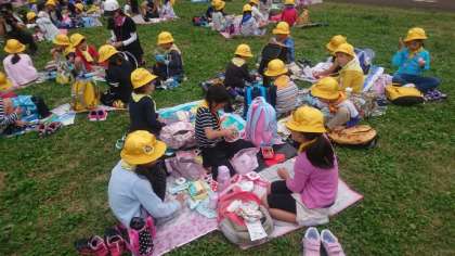 待ちに待ったお弁当です。みんなおいしそうに食べています。お弁当はかわいらしいものばかりです。