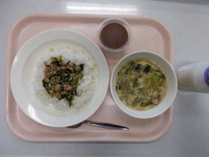 主 食・主 菜: にらそぼろ丼