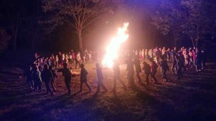 川場の山はすっかり暗くなりました。キャンプファイヤーの火が燃え上がります。