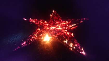 キャンプファイヤが終わって、係の振り返りをしています。星形に残った燃え残りがきれいです。