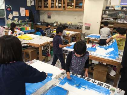 いつもより何倍も大きな画面に、色をのせていくことにわくわくしている姿が見られました。