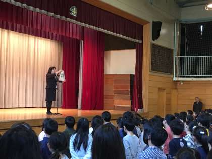 代表児童の言葉では、4年生が各クラスから一人ずつ3学期に頑張りたいことを述べました。様々なことに挑戦すること、誰とでも仲良くすること、高学年の誇りをもてる5年生になる準備をすることでした。