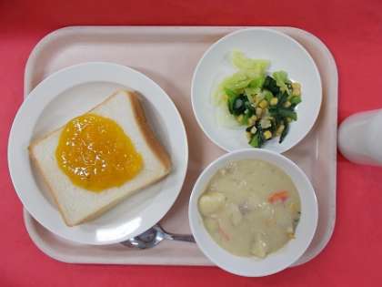 給食の献立の決まりで、「パン」が主食の回数が決まっているので、あまり使用できません。