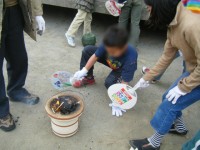 3年生は、「七輪を使って火をおこし、おもちを焼いて試食する」