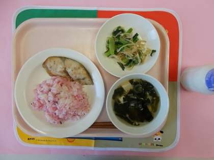 今日の 主食は 「桜の花ごはん」です。