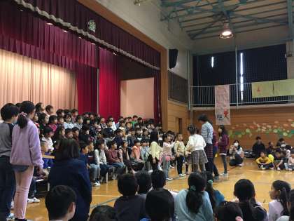 代表委員を中心に、2年生から6年生が1年生に、歓迎の会を開きました。松原小のルールをクイズや劇で楽しく紹介したり、入学おめでとうの気持ちを込めて手作りのプレゼントを渡したりしました。1年生からはありがとうの気持ちを込めて歌を歌ってくれました。