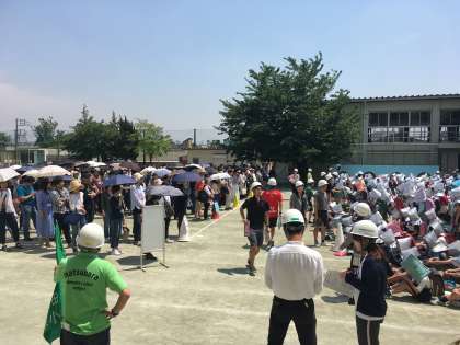児童を引き取りに来ていただく事を想定した避難訓練を行いました。下校後、各家庭で地震が起きた時にどこに行くのか、何で連絡をとるのか、約束事を確認して頂きましたでしょうか?本日は暑い中、訓練にご参加いただきありがとうございました。