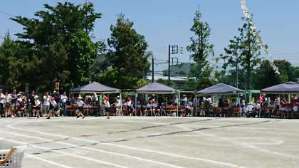 6年生の100メートル走です。新しい時代に向かって走る子どもたちの姿に応援をお願いします