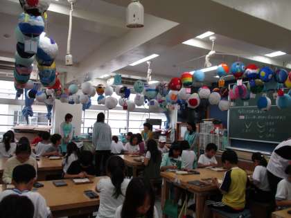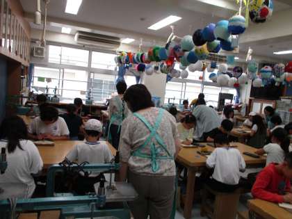 先生のほかにお揃いのエプロンをつけた学習支援ボランティアの方が入って、子どもたちに声をかけてくださっています。