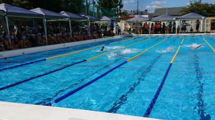このプールでの記録会は今日が最後となります。プールへの感謝もしながら、自分の記録を伸ばすことを目標に力いっぱい泳ぎます。