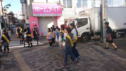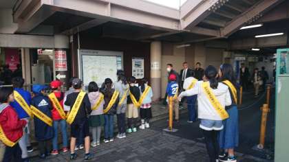 今朝は7時半から明大前駅で、ボランティアを行った5年生です。