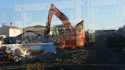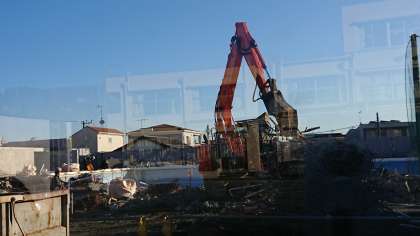 プールの解体が進んでいる工事現場です。近隣にお住まいの皆様には騒音等でご迷惑をおかけして申し訳ありません。