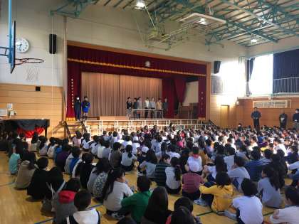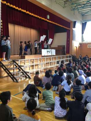 集会委員が考えてくれた今月のお楽しみ集会は「かきかき集会」です。学年ごと考えられたテーマに沿った絵を、クラスで力を合わせて描いていきます。一人5秒、与えられた時間に急いで描き進め、次の人にバトンタッチします。最後に描き終えた絵をみんなで見て盛り上がりました。