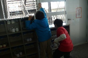 4年生は、自分たちは使わないともだち教室の靴箱も