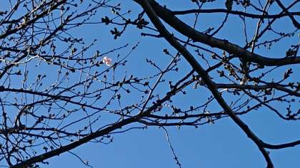 今朝、校庭の桜第一号を見つけました。今年は特に早い開花です。