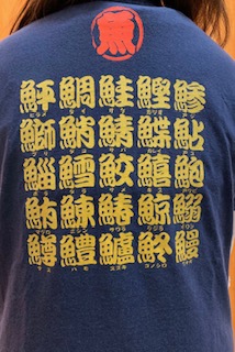 さっそく問題です。この、Tシャツに書いてある魚偏の漢字でいくつ知っているのがありますか?