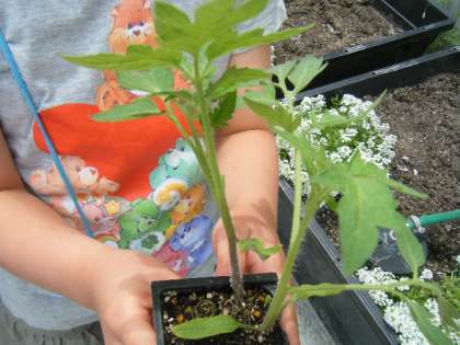 おいしいトマトになるように、植える手順を真剣に聞きながら、丁寧に鉢に植えていきました。