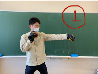 1.左手で前にパンチ!