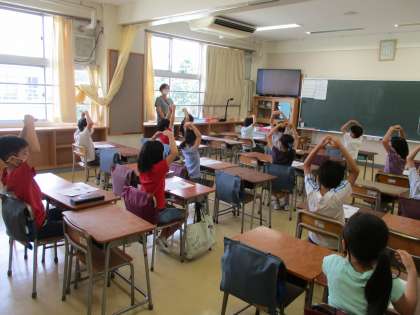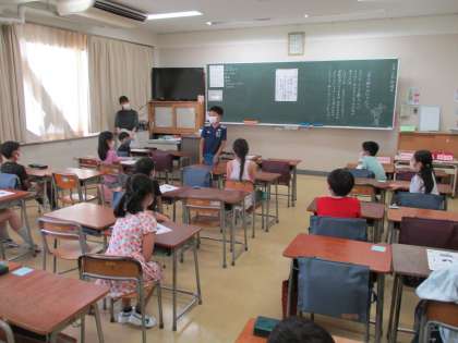 午後に登校してきた3年生Bグループは、Aグループの友達からの交換日記を読んで、書いてくれたことへの返事を考えました。友達の自己紹介を聞いた後の話した中身の確認クイズで、お互いの好きなものや興味があるものなどについて、よりよく知ることができました。屋上では「かげふみ遊び」をしたり、遮光板で太陽を観察したりしながら、太陽とかげの関係について考えました。教室から屋上へ移動する態度は、走ることなく大変静かにできていて、さすが3年生だと思いました。